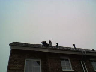 Freitag Mittag hat mich Anne im Büro angerufen. Sie meinte, ich solle mein Handy checken, da sei eine MMS auf den Weg zu mir. Ungeduldig starrte ich auf das Display und wartete. Und wartete. Und wartete. Endlich ging die Bildmitteilung bei mir ein. Ich sah das Dach unserer Hauses und Männer, die auf den Ziegel standen und … eine Satellitenschüssel montierten!